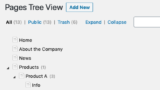 管理画面用 固定ページをツリー表示にして管理できます。ドラッグアンドドロップで位置、順序の入れ替えが可能。